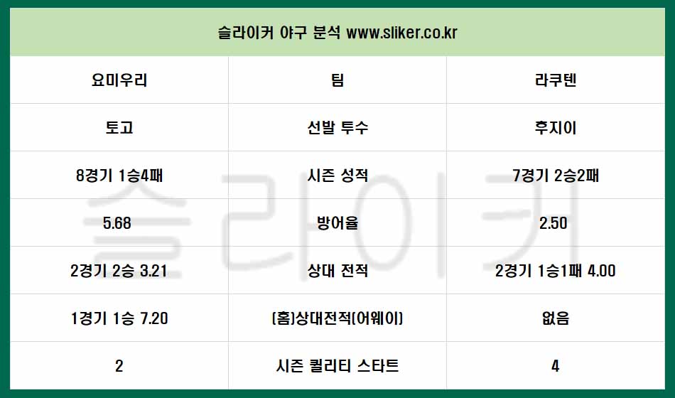 NPB Probable Pitchers June 8
